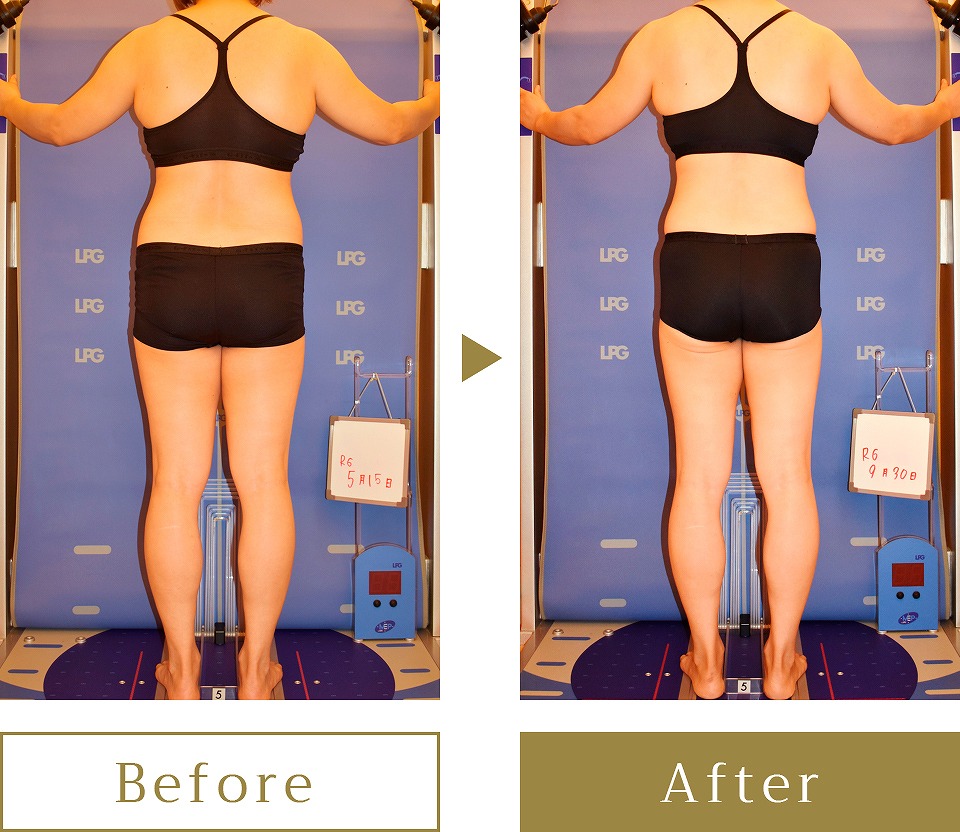 肩周りや二の腕などの背面のケアは自分ではどうにもできないからこそ、身体のライン作りを得意としている”インテグラル”をお手入れで入れていきながら、ご自宅でリポクリームを使用し、マッサージを頑張っていただきました。
